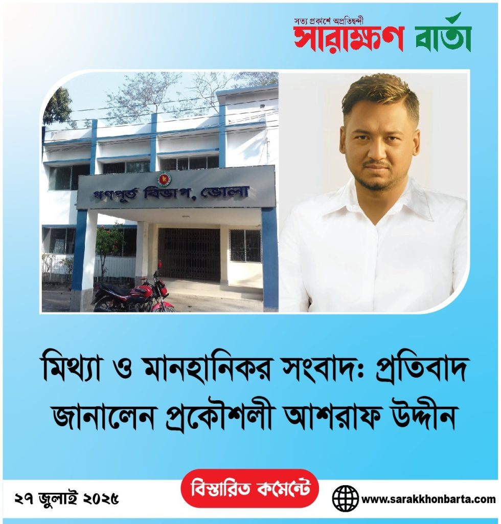 সম্প্রতি একটি অনলাইন পত্রিকায় “টেন্ডার বানিজ্যে গণপূর্তে ছাত্রলীগেই আস্থা: ভোলা থেকে রাঙ্গামাটি যাচ্ছেন রিজু” শিরোনামে প্রকাশিত প্রতিবেদনকে “মিথ্যা, উদ্দেশ্যপ্রণোদিত ও মানহানিকর” বলে তীব্র প্রতিবাদ জানিয়েছেন গণপূর্ত অধিদপ্তরের নির্বাহী প্রকৌশলী মোঃ আশরাফ উদ্দীন রিজু।