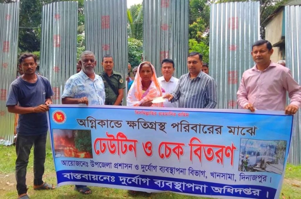 দিনাজপুরের খানসামা উপজেলায় অগ্নিকাণ্ডে ক্ষতিগ্রস্ত ৪২টি পরিবারের মাঝে ঢেউটিন ও নগদ আর্থিক অনুদানের চেক বিতরণ করেছে উপজেলা প্রশাসন ও দুর্যোগ ব্যবস্থাপনা বিভাগ।