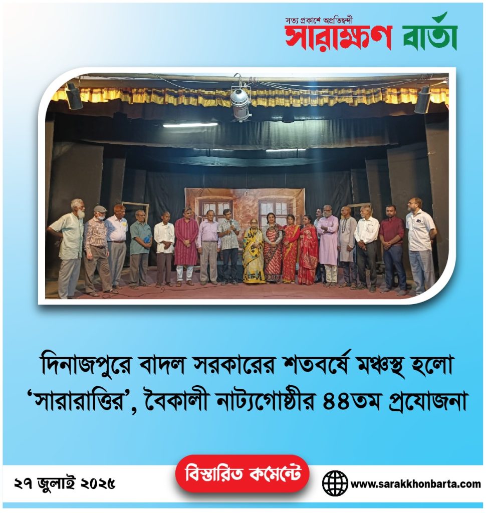 দিনাজপুরে বাদল সরকারের শতবর্ষে মঞ্চস্থ হল”সারারাত্তির” বৈকালী নাট্য গোষ্ঠীর ৪৪তম প্রযোজনা