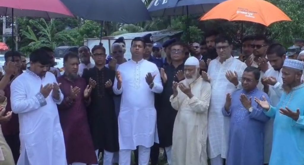এ সময় উপস্থিত ছিলেন, নারায়ণগঞ্জ পুলিশ সুপার প্রত্যুষ কুমার মজুমদার, গণপূর্ত বিভাগের নির্বাহী প্রকৌশলী মো. হারুন অর রশিদ, নারায়ণগঞ্জ জেলা বিএনপির আহ্বায়ক অধ্যাপক মামুন মাহমুদ, নারায়ণগঞ্জ মহানগর বিএনপির আহ্বায়ক এডভোকেট শাখাওয়াত হোসেন খান, নারায়ণগঞ্জ মহানগর বিএনপির সদস্য সচিব আবু আল ইউসুফ খান টিপু, নারায়ণগঞ্জ জেলা বিএনপির আহ্বায়ক কমিটির সদস্য মোঃ মাসুকুল ইসলাম রাজীব, বাংলাদেশ জামায়াত ইসলামীর কেন্দ্রীয় কর্ম পরিষদের সদস্য মাওলানা মাইনুদ্দিন, বৈষম্য বিরোধী আন্দোলনের নারায়ণগঞ্জ জেলা সভাপতি নিরব রায়হান, জুলাই আন্দোলনের শহীদ পরিবারের সদস্য, স্থানীয় গণ্যমান্য ব্যক্তিবর্গ উপস্থিত ছিলেন।