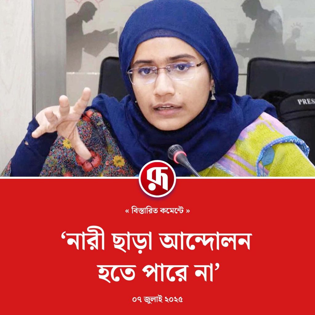 নারী ছাড়া আন্দোলন হতে পারে না বলে মন্তব্য করেছেন জাতীয় নাগরিক পার্টির (এনসিপি) জ্যেষ্ঠ যুগ্ম আহ্বায়ক সামান্তা শারমিন।