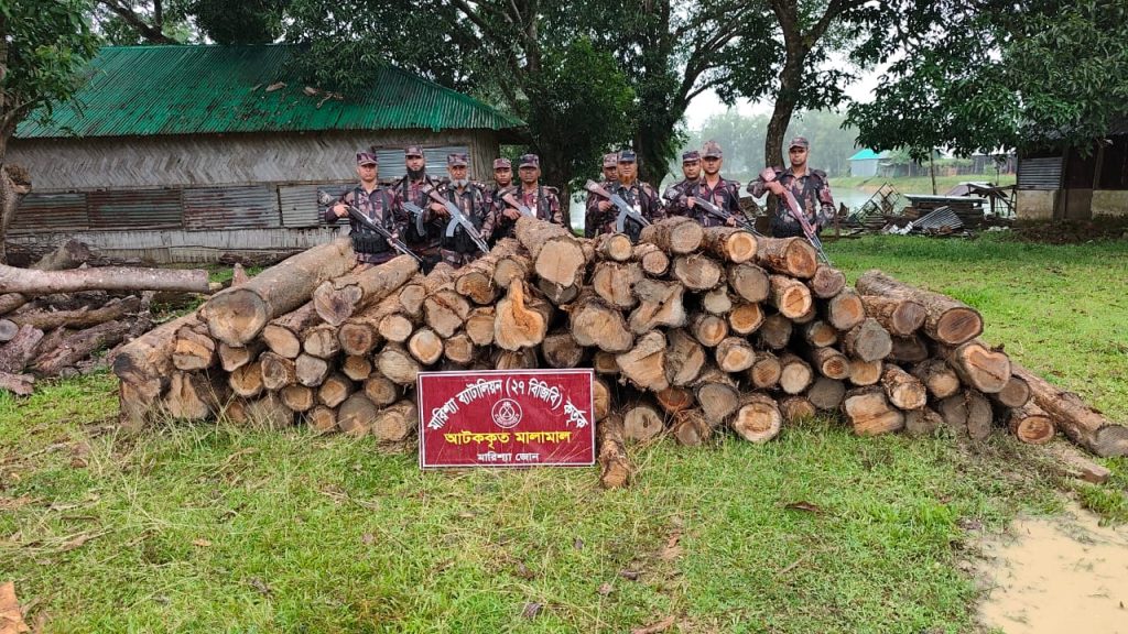 বাঘাইছড়িতে বিজিবির অভিযানে অবৈধভাবে পাচার হওয়া সেগুন কাঠ জব্দ