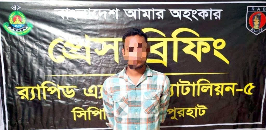 শুক্রবার (৮ আগস্ট) গভীর রাতে নওগাঁ জেলার বদলগাছী থানাধীন গোল্লা মাধুপাড়া এলাকায় বিশেষ অভিযান চালিয়ে তাকে আটক করা হয়। গ্রেফতারকৃত রিফাত (২৪) মহাদেবপুর উপজেলার বিনোদপুর গ্রামের শহিদুল ইসলামের ছেলে।