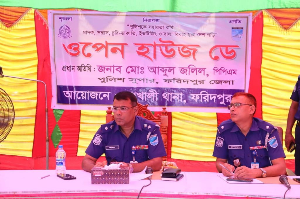 ফরিদপুর জেলার মধুখালী থানায় মাদক, জুয়া, চুরি, ছিনতাই, সন্ত্রাস, কিশোরগ্যাং, সাইবার অপরাধ, গুজব, ইভটিজিং, বাল্যবিবাহ ও নারীর প্রতি সহিংসতা প্রতিরোধসহ সার্বিক আইন-শৃঙ্খলা পরিস্থিতি উন্নয়নে “ওপেন হাউজ ডে” ও মতবিনিময় সভা অনুষ্ঠিত হয়েছে।