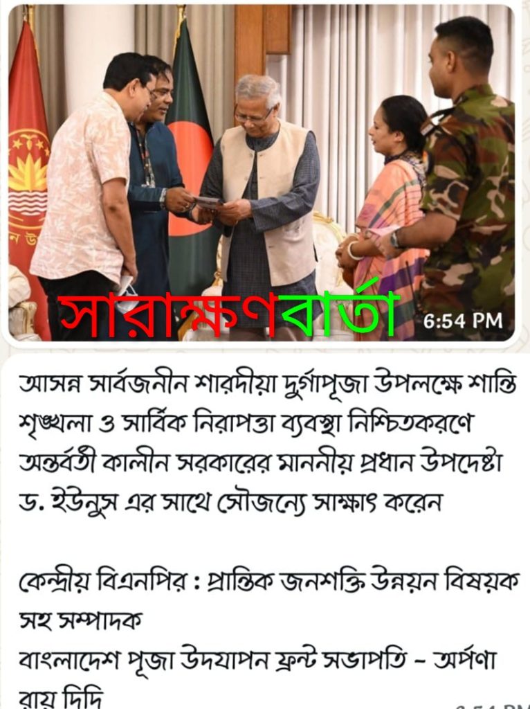 এসময় দুর্গাপূজার প্রস্তুতি ও সার্বিক অবস্থা সম্পর্কে জানতে চান প্রধান উপদেষ্টা।