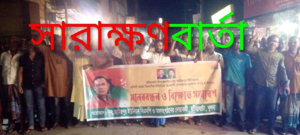 বটিয়াঘাটায় আওয়ামী দোসরদের দিয়ে বিএনপির কমিটি করায় বিক্ষোভ মিছিল ও মানব বন্ধন অনুষ্ঠিত