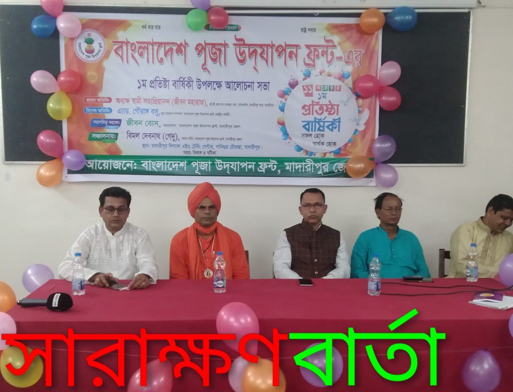মাদারীপুরে বাংলাদেশ পূজা উদযাপন ফ্রন্টের ১ম প্রতিষ্ঠাবার্ষিকী উদযাপিত।