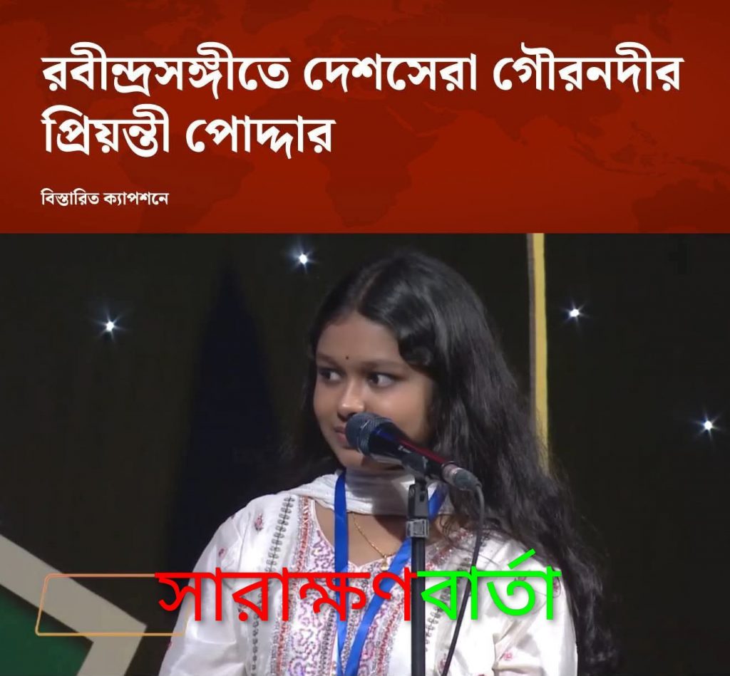 সারা দেশব্যাপী শিশু-কিশোরদের প্রতিভা অন্বেষণমূলক অনুষ্ঠান ‘নতুন কুঁড়ি-২০২৫’-এর চূড়ান্ত পর্বে রবীন্দ্রসংগীত বিভাগে প্রথম স্থান অর্জন করে দেশসেরা হয়েছে বরিশালের গৌরনদী উপজেলার প্রতিভাবান কন্যা প্রিয়ন্তী পোদ্দার।
