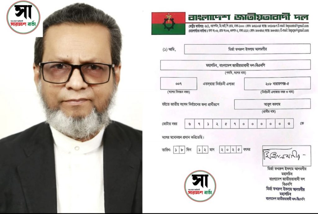 নানা জল্পনা-কল্পনার অবসান ঘটিয়ে অবশেষে নারায়ণগঞ্জ-৫ আসনে চূরান্ত দলীয় মনোনয় দেয়া হলো ঐতিহ্যবাহী জালাল হাজী পরিবারের সুযোগ্য সন্তান সাবেক তিনবারের সাংসদ অ্যাডভোকেট আবুল কালামকে। বুধবার (২৪ ডিসেম্বর) সকালে এ বিষয়টি নিশ্চিত করেন অ্যাডভোকেট আবুল কালাম। তিনি বলেন, আলহামদুলিল্লাহ্ আল্লাহ্ রাব্বুল আল আমিন কবুল করছে। নারায়ণগঞ্জবাসী ও জনগণের তিনি ডাক শুনেছেন। তারা আমাকে অনেক ভালোবাসে। আর সবচেয়ে বড় কথা, বন্দরটা অটুট থাকলো। আমি সকলের দোয়া চাই। সবাই দোয়া করবেন আমি যেন বিপুলভোটে বিজয়ী হয়ে এ আসনটি আমাদের দলের চেয়ারপার্সন বেগম খালেদা জিয়া ও ভারপ্রাপ্ত চেয়ারম্যান তারেক রহমানকে উপহার দিতে পারি এদিকে অ্যাডভোকেট আবুল কালাম দলীয় মনোনয়ন পাওয়ায় তার তৃণমূল নেতাকর্মীদের মাঝে খুশি বন্যা লক্ষ্য করা যাচ্ছে। তারা বলছেন, আমরা এই সুখবরের জন্য অপেক্ষায় ছিলাম। আমাদের বিশ্বাস ছিলো, দল কালাম সাহেবের মত ত্যাগী ও পরীক্ষিত নেতাদের মূল্যায়ন করবে। এতটু দেরি হলেও দল এটাই প্রমাণ করেছে যে, দল আসলে ত্যাগী ও পরীক্ষিত নেতাদের পক্ষে। তৃণমূল নেতাকর্মীরা আরও বলেন, আসলে দলীয় মনোনয়নের ব্যাপারে এতদিন যাদের কথা শোনা যাচ্ছিলো তারা মনোনয়ন পেলে এ আসনে একটি বড় ধরনের ভরাডুবির আশঙ্কা ছিলো। কারণ, তাদের পক্ষে জনসমর্থন খুব কম ছিলো। ফলে ফাঁকা মাঠে অনেকেরই গোল দেয়ার সুযোগ ছিলো। কিন্তু কালাম সাহেবের মনোনয়নে সেই সুযোগ আর থাকছেন না। আশা করছি, আল্লাহ্’র রহমতে এ আসনে কালাম সাহেবের পক্ষে গণজোয়ার সৃষ্টি হবে এবং বিপুল ভোটে বিএনপির মনোনীত প্রার্থী সাবেক তিনবারের সাংসদ অ্যাডভোকেট কালাম সাহেব বিজয়ী হবেন। এদিকে একই দিন অ্যাডভোকেট আবুল কালামের পক্ষে তার কন্যা অ্যাডভোকেট বাঁধন নারায়ণগঞ্জ নির্বাচন কমিশন কার্যালয় থেকে মনোনয়নপত্র সংগ্রহ করেন। পিতার পক্ষে মনোনয়নপত্র সংগ্রহের পর অ্যাডভোকেট বাঁধন বলেন, আলহামদুলিল্লাহ্ আমি আল্লাহ’র দরবারে লক্ষকোটি সুকরিয়া আদায় করছি এবং আমার আব্বুর পক্ষ থেকে বিএনপির ভারপ্রাপ্ত চেয়ারম্যান তারেক রহমানের প্রতি কৃতজ্ঞতা প্রকাশ করছি। আমার আব্বু আজ দলীয় মনোনয়ন পেয়েছেন। আনুষ্ঠানিক ভাবে যে চিঠিটা দিয়েছে, সেই চিঠিটা গুলশান কার্যালয় থেকে সংগ্রহ করা হয়েছে। আমরা এখন গুলশান কার্যালয় থেকে তার মনোনয়ন সংগ্রহ করলাম। ইনশাআল্লাহ্ আমরা সবাইকে নিয়ে বিশেষ করে যারা মাঠে ছিলেন তাদের সবার কাছে দোয়া চাই। আমরা আশা করছি, বরাবরের মতই আপনারা সবাই আব্বুর পাশে থাকবেন।প্রসঙ্গত, নারায়ণগঞ্জ-৫ আসনে ১৯৯১, ১৯৯৬ (ফেব্রুয়ারি) ও ২০০১ সালে জাতীয় সংসদ নির্বাচনে বিএনপির মনোনয়নে অ্যাডভোকেট আবুল কালাম নির্বাচিত হয়েছিলেন।