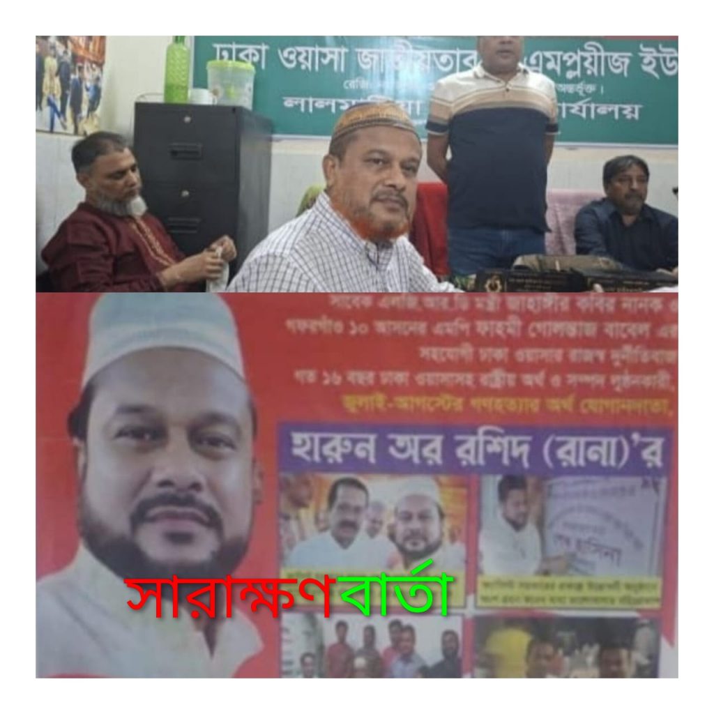 ফ্যাসিস্ট আওয়ামী লীগের সাবেক মন্ত্রী জাহাঙ্গির কবির নানক ও সাবেক এমপি গোলন্দাজ বাবেলের ঘনিষ্ঠ সহোচর এবং ঢাকা ওয়াসার রাজস্ব পরিদর্শক হারুন অর রশিদ রানা আন্ডার বিলিং,মিটার টেম্পারিং ও অবৈধ পানির লাইন সংযোগ প্রদানে সহযোগিতার মাধ্যমে সরকারের রাজস্ব ফাঁকি দিয়ে সম্পদের পাহাড় গড়ে তুলেছেন। ঢাকার মোহাম্মদপুরে চারটি বাড়ি। তাছাড়া, ঢাকায় একাধিক প্লট ও ফ্লাট ক্রয় করেছেন। রয়েছে প্রাইভেট কার। ময়মনসিং জেলার পাগলা থানাস্থ মাখন গ্রামে রাজকীয় প্রাসাদ গড়ে তুলেছেন। এছাড়া তার গ্রামের বাড়িতে প্রচুর স্থাবর-অস্থাবর সম্পদ গড়ে তুলেছেন। তবে চতুর রানা সম্পদ নিজ নামে না করে স্ত্রী ও পরিবারের সদস্যদের নামে করেছেন। বর্তমানে সর্বসাকুল্যে ৩৫ হাজার টাকা বেতনের(চাকরিতে যোগদানকালে বেতন ১০ হাজার টাকার কম ছিল) তৃতীয় শ্রেণীর কর্মচারির বিত্ত বৈভব দেখে গ্রামবাসী ও ওয়াসার কর্মচারীগণ অবাক। সম্প্রতি দুর্নীতি দমন কমিশনে(দুদক) জনৈক নাগরিক অধিকার কর্মি এহসানুল হক চৌধুরী দায়েরকৃত অভিযোগে এমন সব তথ্য উঠে এসেছে।