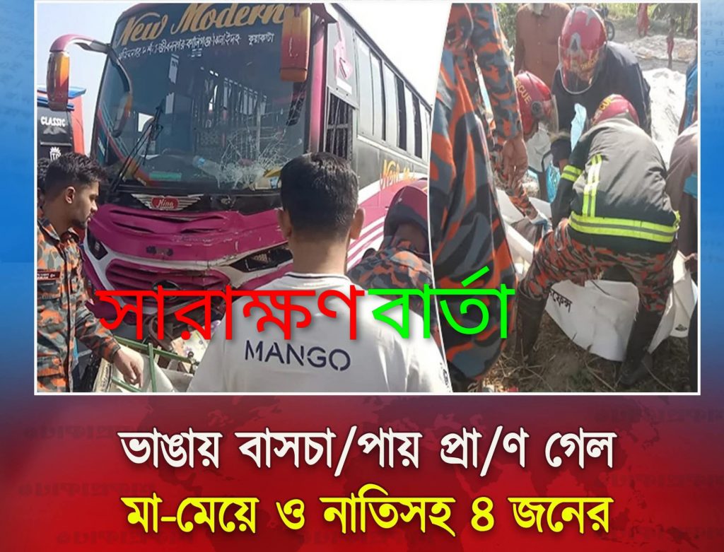 পুলিশ জানায়, ভাঙ্গা থেকে টেকেরহাটগামী একটি অটোরিকশা চুমুরদী ইউনিয়নের দিকে যাচ্ছিল। পথে কৈডুবি সদরদী রেলক্রসিং এলাকায় বাসের সঙ্গে সংঘর্ষ হলে অটোরিকশার চার যাত্রী ঘটনাস্থলেই নিহত হন। দুর্ঘটনার পর কিছুক্ষণ ঢাকা–বরিশাল মহাসড়কে যানচলাচল বন্ধ থাকে। পুলিশ ঘটনাস্থলে উদ্ধার তৎপরতা চালাচ্ছে এবং নিহতদের পরিচয় শনাক্তের চেষ্টা করছে।