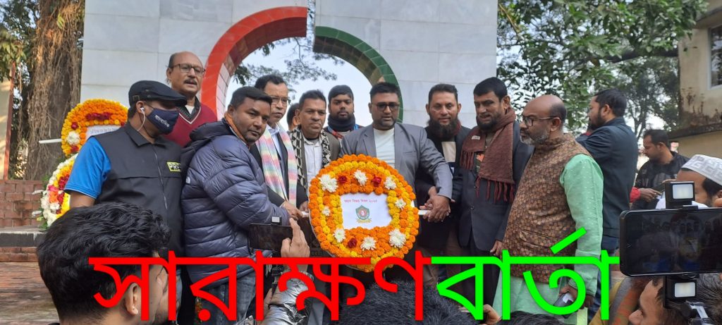 আজ ১৬ ডিসেম্বর বাংলাদেশ ও বাংলাদেশীদের জীবনে এক চরম বিজয়োল্লাসের দিন।১৯৭১ সালের এই দিনে বাংলাদেশ পাকিস্তানের কবল থেকে চিরতরে মুক্ত হয়।নয় মাস রক্তক্ষয়ী সংগ্রামের মধ্য দিয়ে ৩০ লক্ষ শহীদের রক্তের বিনিময়ে অর্জিত হয়েছে আমাদের এই লাল সবুজের পতাকা।আজ ভোরের আলো ফুরাতেই রাজৈর উপজেলা সাংবাদিক ফোরাম,রাজৈর মডেল প্রেসক্লাব, রাজৈর রিপোর্টার্স ইউনিটির নেতৃবৃন্দ বীর শহীদদের প্রতি বিনম্র শ্রদ্ধা জ্ঞাপন করেন।