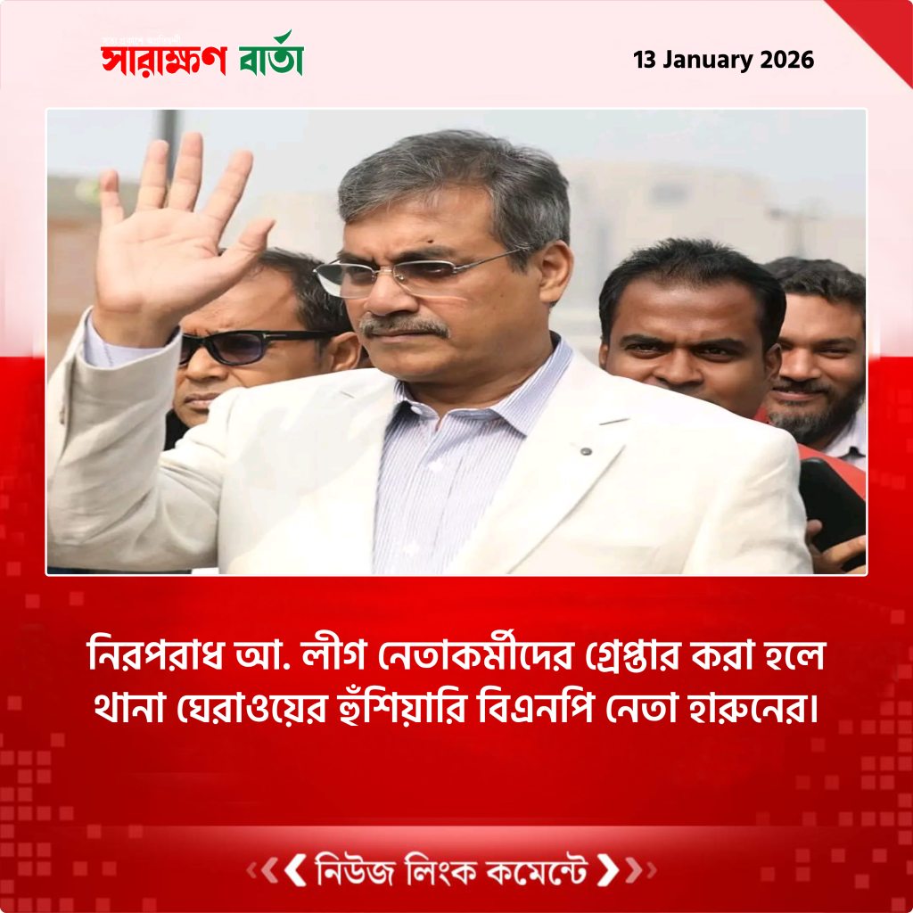 তিনি আরও উল্লেখ করেন, ইতোমধ্যেই কিছু ঘটনা ঘটেছে, যেখানে আওয়ামী লীগ সমর্থন করার অভিযোগে মানুষকে হয়রানি করা হয়েছে। “যাদের বিরুদ্ধে সুনির্দিষ্ট অভিযোগ বা মামলা নেই, তাদের কোনোভাবেই হয়রানি করা চলবে না। তা না হলে জনগণকে সঙ্গে নিয়ে আমি নিজে থানা ঘেরাও করব,” যোগ করেন হারুনুর রশীদ।