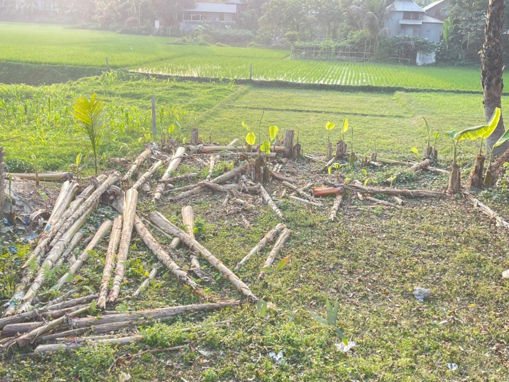 ধামরাইয়ে জমি দখল চেষ্টার অভিযোগ, কেটে ফেলা হয়েছে গাছপালা।