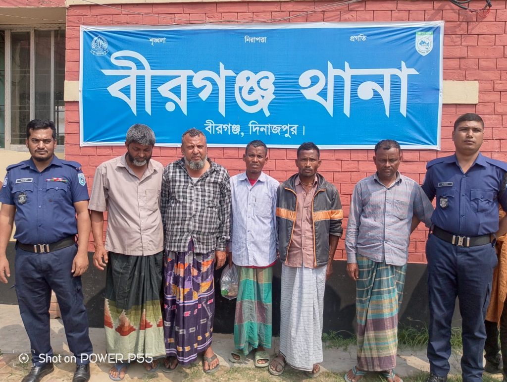 পুলিশ জানায়, বৃহস্পতিবার (২৬ মার্চ ২০২৬) রাত ১১টা ৫৫ মিনিটে বীরগঞ্জ থানার এসআই (নি:) রায়হান নবীর নেতৃত্বে সঙ্গীয় ফোর্স গোপন সংবাদের ভিত্তিতে ১১নং মরিচা ইউনিয়নের মহাদেবপুর গ্রামের সরকারি ক্যানেলের পাশের একটি পতিত জমিতে অভিযান চালায়। সেখানে বাঁশঝাড়ের নিচে গোপনে জুয়ার আসর বসিয়ে তাস খেলার সময় ৫ জনকে হাতেনাতে আটক করা হয়।