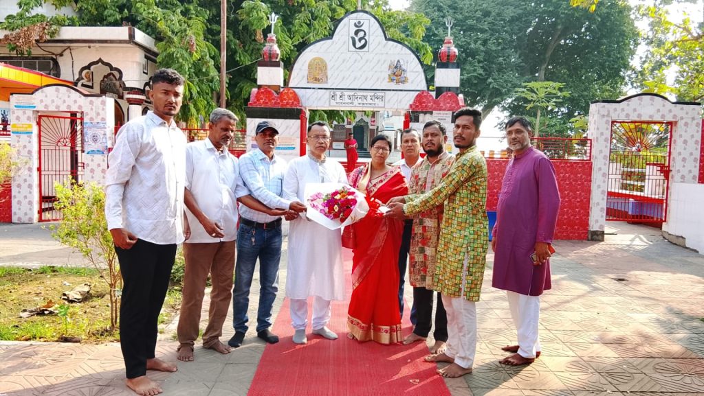 মহেশখালী প্রাচীনতম জাগ্রত আদিনাথ মন্দিরে পূজা দিতে গিয়ে ফুলেল শুভেচ্ছায় সিক্ত হলেন বাংলাদেশ পূজা উদযাপন ফ্রন্ট কেন্দ্রীয় কমিটির যুগ্ম সাধারণ সম্পাদক এডভোকেট গৌরাঙ্গ বসু।