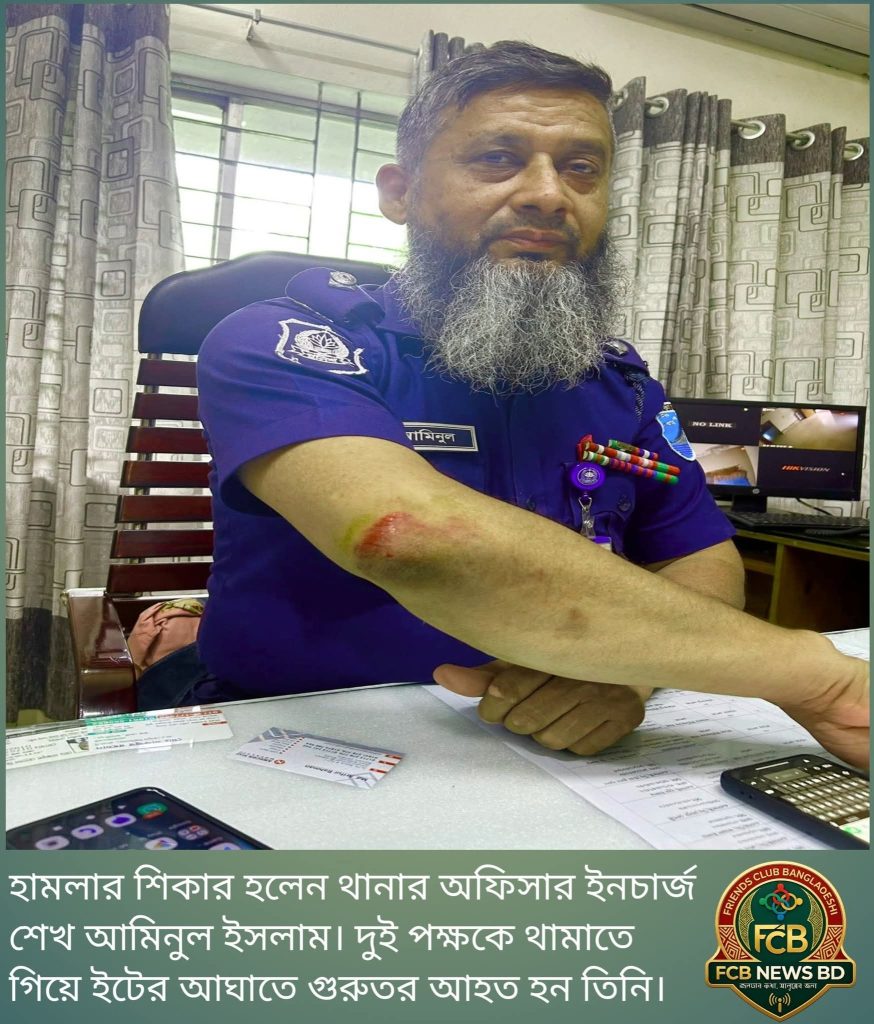 পরিস্থিতি নিয়ন্ত্রণে আনতে গিয়ে সাহসিকতার সঙ্গে এগিয়ে আসেন থানার অফিসার ইনচার্জ শেখ আমিনুল ইসলাম। দুই পক্ষকে থামানোর চেষ্টা করতে গিয়ে তিনি নিজেই সংঘর্ষের মাঝে পড়েন।