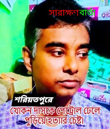 শরিয়তপুরে এক ঔষধ ব্যবসায়ীকে উপুর্যপরি ছুরিকাঘাত ও সারা দেহে পেট্রল ঢেলে আগুনে পুড়িয়ে হত্যা চেষ্টার অভিযোগ।