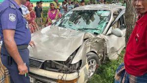 স্থানীয় সূত্রে জানা যায়, দুপুরের দিকে একটি প্রাইভেট কার দ্রুত গতিতে ওই এলাকায় পৌঁছালে নিয়ন্ত্রণ হারিয়ে সড়কের পাশের একটি গাছে ধাক্কা লাগে। এতে গাড়িতে থাকা চার যাত্রী গুরুতর আহত হন।